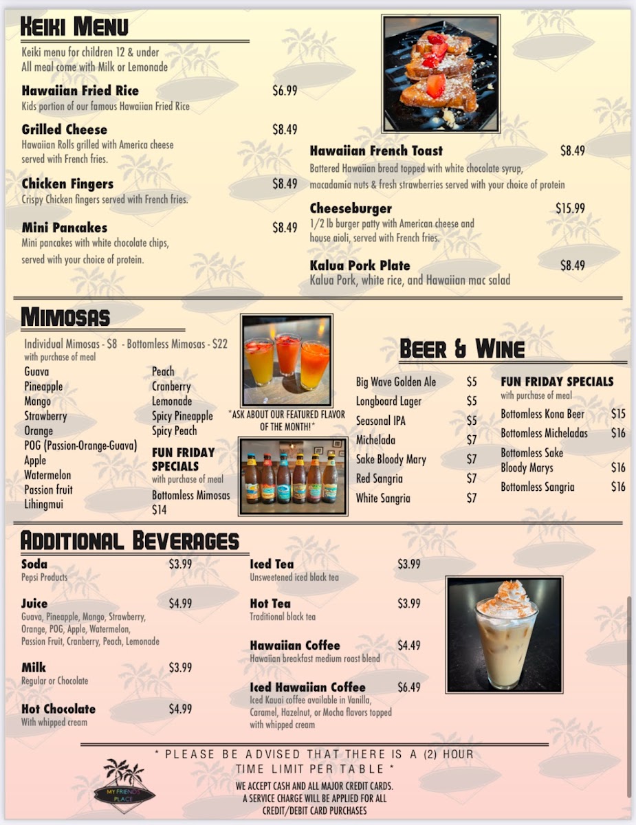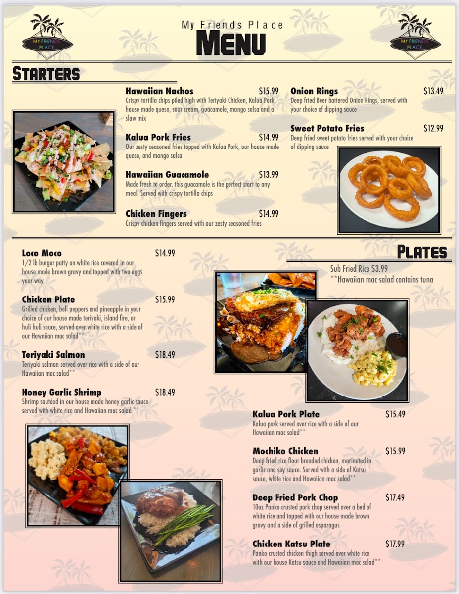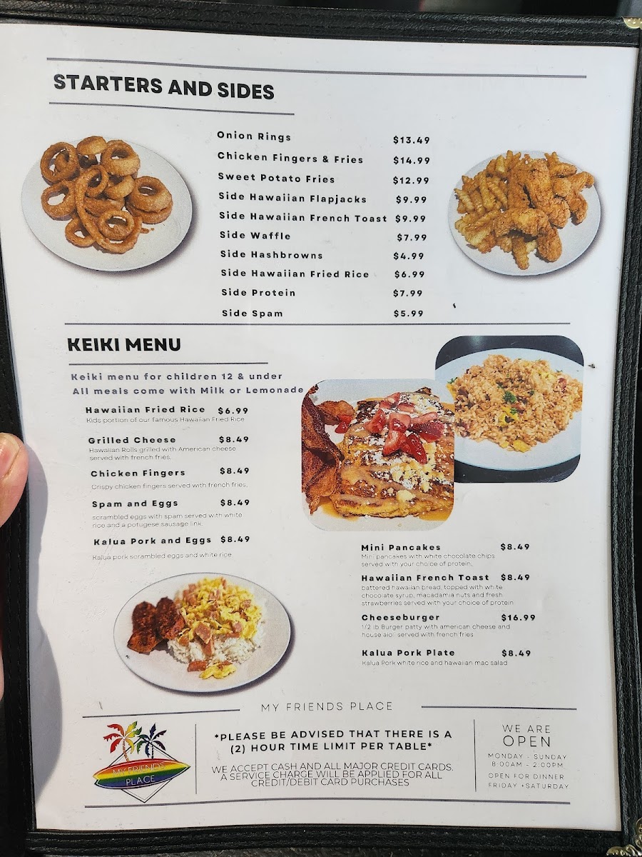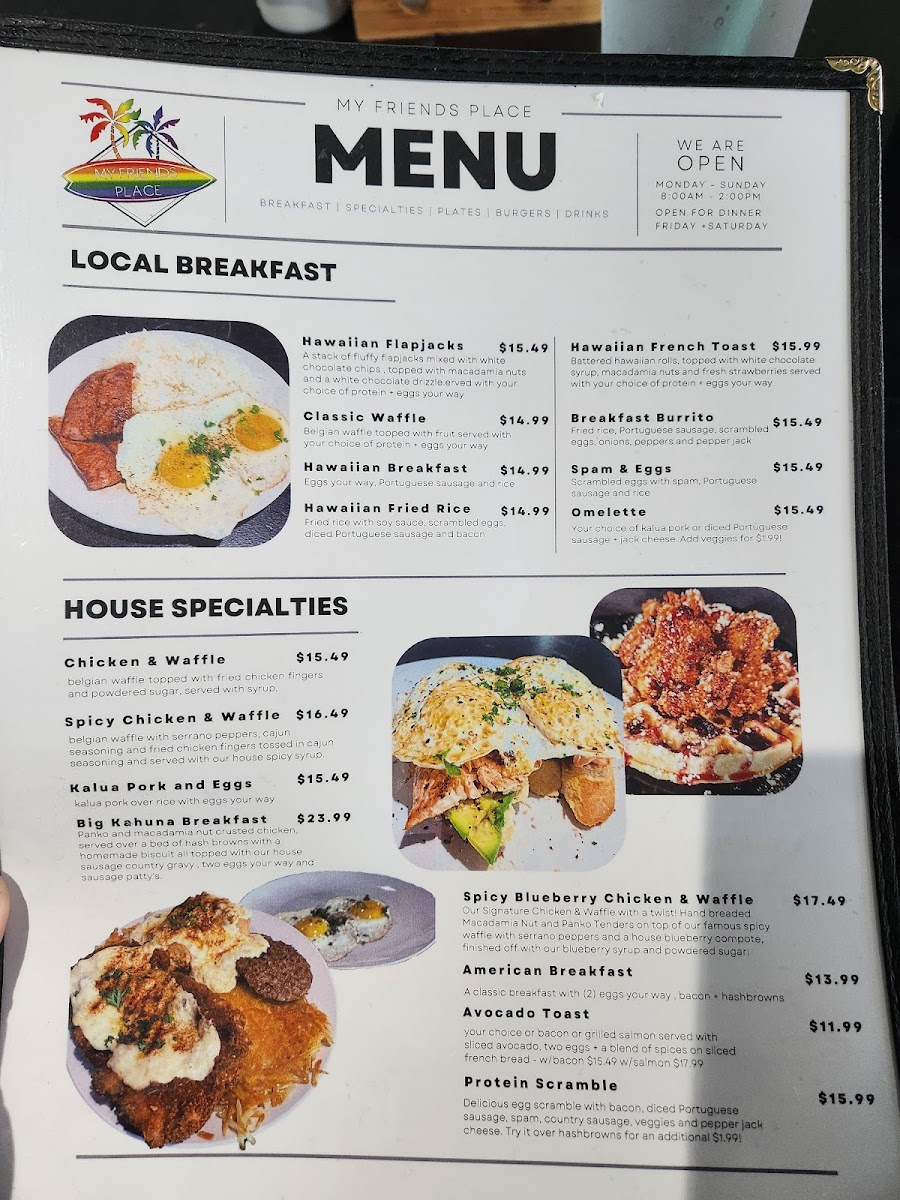 While some patrons have noted the occasional inconsistency in food temperatures or service speed during busy times, the general consensus is that this is a dining spot that brings joy and deliciousness to the table. So, if you're looking for a place to grab a bite, bond over brunch, or simply enjoy a taste of Hawaiian culture, My Friends Place is undoubtedly worth a visit.
